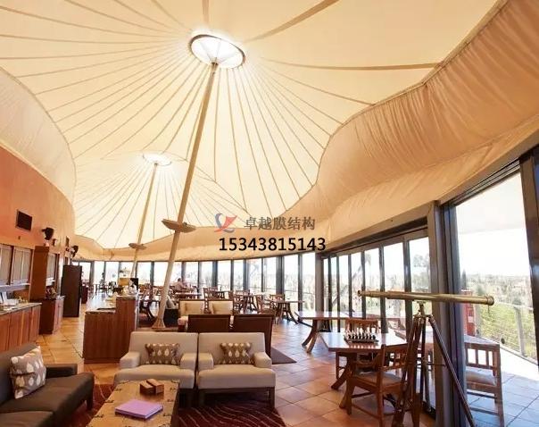 美學價值:PTFE膜結構曲面可變,能結合環(huán)境建筑出標志性形象。在陽光或燈光下,建筑物內部空間視覺環(huán)境開闊和諧,外部則顯現出夢幻效果。