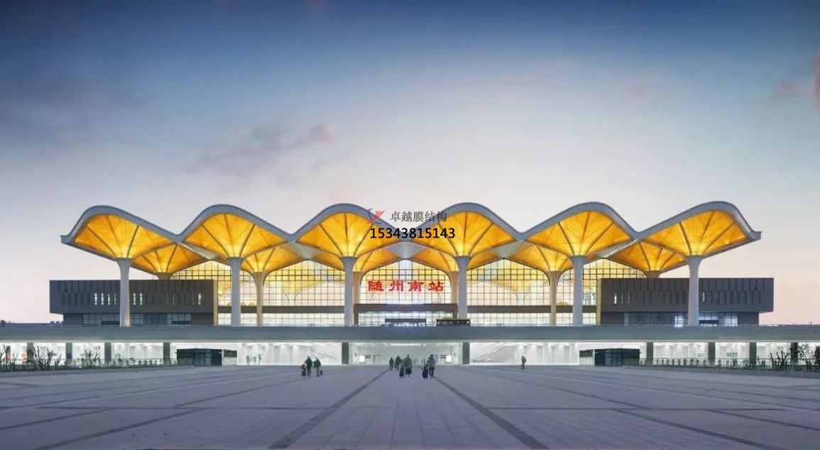 隨州高鐵站:隨州高鐵站站房采用了膜結(jié)構(gòu)設(shè)計(jì),通過(guò)驗(yàn)算不同膜材的最大適用跨度,最終選用了滿足要求的膜材方案。該站房膜結(jié)構(gòu)造型獨(dú)特,既美觀又實(shí)用,成為隨州市的新地標(biāo)。