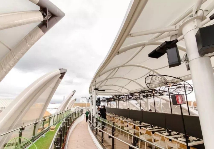 可以讓建筑輕松擁有其他建筑材料無(wú)法實(shí)現(xiàn)的異形效果,大幅度異型對(duì)織物材料來(lái)說(shuō)也是小問(wèn)題,彎曲度高的外形用織物材料實(shí)現(xiàn)起來(lái)毫無(wú)難度,選擇幕墻織物材料不會(huì)因?yàn)樵煨蛷?fù)雜而耽誤工期,反而是進(jìn)展最快材料。