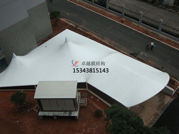 膜結(jié)構(gòu)棚頂?shù)膽?yīng)用領(lǐng)域:其應(yīng)用領(lǐng)域廣泛,常用于體育場(chǎng)館、商業(yè)建筑、交通設(shè)施、工業(yè)倉(cāng)儲(chǔ)等領(lǐng)域。如 “鳥巢” 國(guó)家體育場(chǎng),其外層采用了 ETFE 單層膜結(jié)構(gòu),內(nèi)層采用了 PTFE 膜作為 “隔音幕”,不僅為觀眾提供了良好的遮陽(yáng)避雨條件,還解決了噪音問(wèn)題,同時(shí)也成為了北京的標(biāo)志性建筑之一。商場(chǎng)、購(gòu)物中心、商業(yè)街等商業(yè)場(chǎng)所的屋頂常采用膜結(jié)構(gòu)棚頂,能夠?yàn)橄M(fèi)者提供舒適的購(gòu)物環(huán)境,同時(shí)提升建筑的整體美觀度和商業(yè)氛圍。在機(jī)場(chǎng)航站樓、火車站、汽車站、高速公路收費(fèi)站等交通設(shè)施中,膜結(jié)構(gòu)棚頂可以為旅客和工作人員提供遮陽(yáng)、避雨的空間,同時(shí)也有助于提升交通樞紐的形象。對(duì)于一些大型的工業(yè)廠房、倉(cāng)庫(kù)、物流中心等,膜結(jié)構(gòu)棚頂可以提供大面積的覆蓋空間,滿足工業(yè)生產(chǎn)和倉(cāng)儲(chǔ)的需求,且具有較好的經(jīng)濟(jì)性和實(shí)用性。