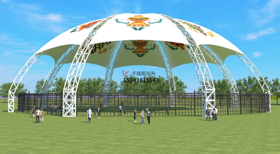 相較于一些傳統(tǒng)的建筑結(jié)構(gòu),膜結(jié)構(gòu)景觀棚由于其自身的輕巧特性,不需要龐大而厚重的支撐體系,從而能夠在有限的場(chǎng)地范圍內(nèi),最大限度地拓展出寬敞而實(shí)用的內(nèi)部空間。無(wú)論是作為休閑廣場(chǎng)上的遮陽(yáng)避雨設(shè)施,還是作為公園湖畔的觀景亭,亦或是商業(yè)街區(qū)的戶外展示區(qū),膜結(jié)構(gòu)景觀棚都能以其高效的空間利用方式,滿足人們多樣化的使用需求。