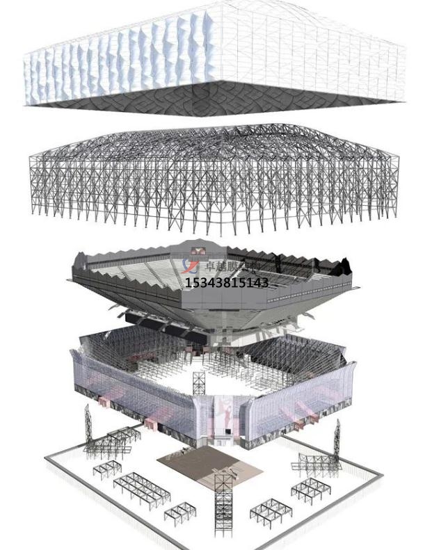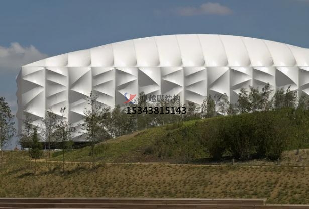 場館高30m,面積兩萬平方米,外敷可收回PVC膜,膜在后面的結構的效果下構成美麗的崎嶇。透光的外表皮能夠使得場館在白天能夠十分少的依賴人工照明。