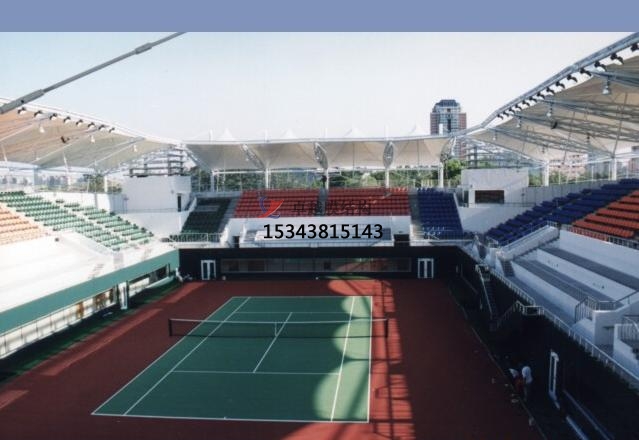 德國漢堡網(wǎng)球場膜結(jié)構(gòu)展開面積約10000平方米,采用PVC(PVDF面層)膜材。并且選用能夠滿足要求的更薄的膜材型號。屋蓋是可開合式的膜結(jié)構(gòu),可縮進(jìn)的膜結(jié)構(gòu)棚蓋可以在任何惡劣的天氣時,將棚蓋關(guān)上;在天氣轉(zhuǎn)好時打開。以確保在任何季節(jié)里網(wǎng)球比賽的舉行,或避免時重要的賽事中斷或延遲。此建筑充分發(fā)揮了索膜結(jié)構(gòu)重量輕、造型靈活的優(yōu)點。