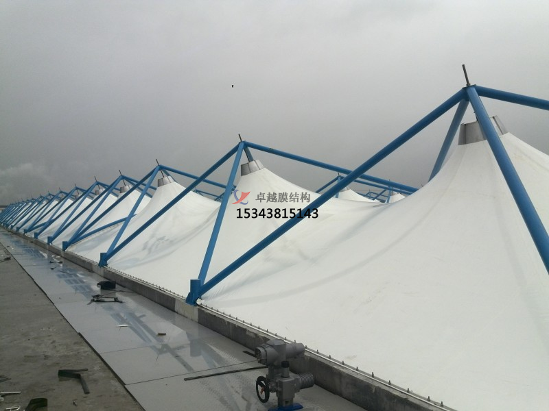 許昌膜結(jié)構(gòu)污水池反吊膜封閉加蓋是一種新型的污水處理設(shè)施,它利用膜技術(shù)來處理污水,同時利用反吊膜結(jié)構(gòu)將處理池封閉。這種設(shè)施具有高效、環(huán)保、節(jié)能等優(yōu)點,被廣泛應(yīng)用于城市污水處理、工業(yè)污水處理等領(lǐng)域。