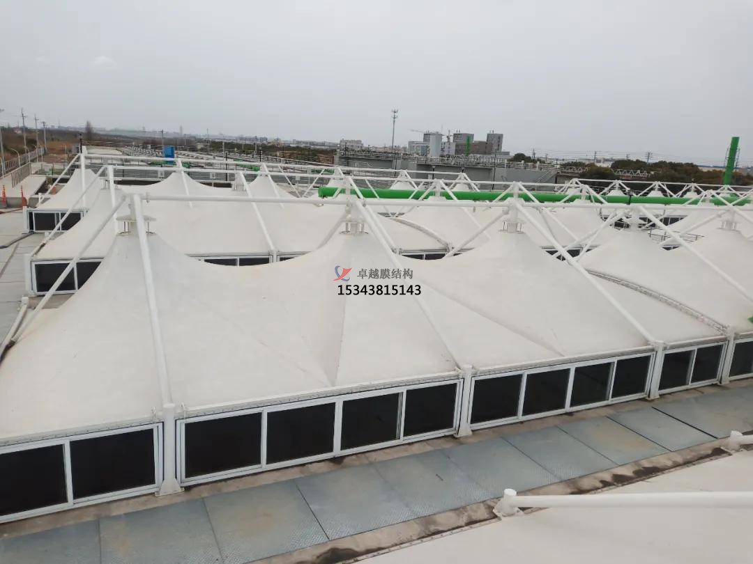 在運(yùn)輸污水池膜材時(shí),盡量將蓋板分成小塊搬運(yùn)。這樣不僅時(shí)利于拆卸及人工的搬運(yùn).同時(shí)也省去了調(diào)用大型設(shè)備的成本。在各個(gè)膜材板運(yùn)輸?shù)轿缓?在進(jìn)行拼接安裝時(shí).各個(gè)小塊膜材之間、膜材和水池頂面之間需要密封連接,這樣可以有效防止臭氣泄漏。在我們拼接安裝完成之后,可以先用水或是空氣來代替臭氣進(jìn)行調(diào)試.檢測(cè)其安裝結(jié)果是否達(dá)到了密封性效果,檢查蓋板有無滴、漏、冒等現(xiàn)象。在進(jìn)行著一系列檢驗(yàn)工作完成之后.才能正常使用。