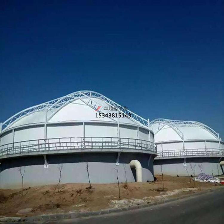 鋼架反吊膜結(jié)構(gòu)是專門用于污水池加蓋密閉的一種膜結(jié)構(gòu)形式,結(jié)構(gòu)形式新穎,防腐耐霉,由鋼結(jié)構(gòu)、膜結(jié)構(gòu)及安裝輔件構(gòu)成,根據(jù)不同污水池現(xiàn)場條件進行個性化設(shè)計安裝。鋼結(jié)構(gòu)在外部形成穩(wěn)定受力結(jié)構(gòu),膜材料反吊與機構(gòu)內(nèi),隔絕廢氣對剛架構(gòu)的腐蝕。鋼架反吊膜分為圓形反吊膜和方形反吊膜,其中方形反吊膜又分為拱形及吊帽結(jié)構(gòu)。
