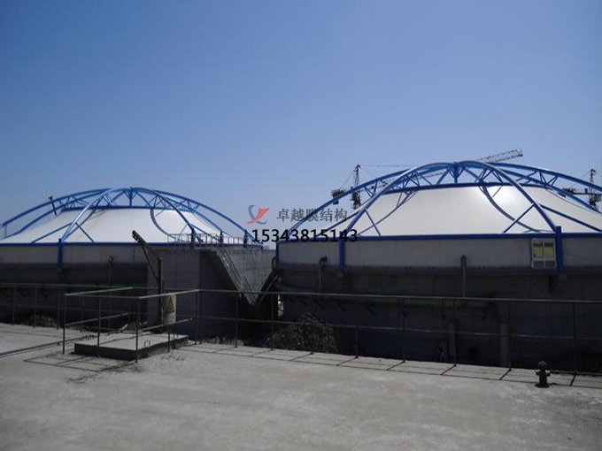 膜結(jié)構(gòu)污水池加蓋除臭具備優(yōu)良的隔熱保溫實(shí)際效果,能反射70%的太陽光能源,消化吸收17%的膜材料自身,傳輸13%的發(fā)熱量,膜結(jié)構(gòu)污水池加蓋除臭工程施工周期時(shí)間短,反映在全部生產(chǎn)加工生產(chǎn)制造都能在加工廠進(jìn)行,只需在現(xiàn)場開展拼裝和起重吊裝。