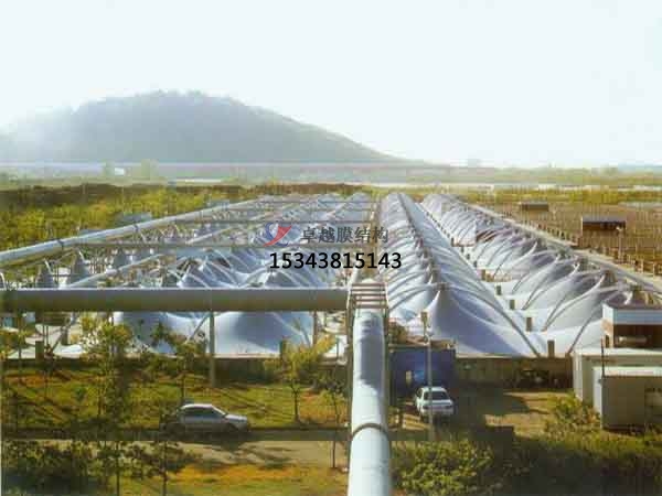 依據(jù)生活及城市污水處理的特點(diǎn),在城市污水處理廠加蓋除臭中,大型池體的封閉體系選擇尤為關(guān)鍵,鋼支持反吊膜的技術(shù)充分發(fā)揮了結(jié)構(gòu)骨架與膜材料的結(jié)合。專門研發(fā)并生產(chǎn)符合該領(lǐng)域的相關(guān)膜材,在具體工程中已大量使用,其安裝快捷、檢驗(yàn)方便、形式靈活多樣、自潔性好、經(jīng)濟(jì)效果顯著。