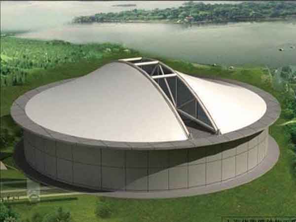 1、防腐效果強:由于膜結(jié)構(gòu)建筑結(jié)構(gòu)的特殊性,可將鋼架架設(shè)在外面,只有膜材部分接觸初沉池,基本解決了腐蝕問題,而且將來也不用考慮維護問題。