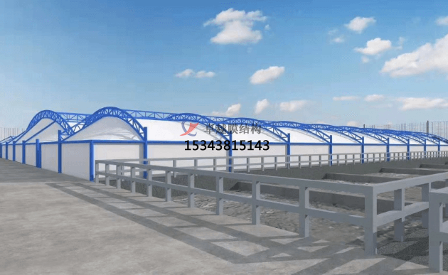 總之,三門峽膜結(jié)構(gòu)污水池處理池張拉膜封閉工程是一項(xiàng)復(fù)雜而又重要的工程,需要選擇合適的膜材料和封閉方案,并嚴(yán)格按照施工規(guī)范進(jìn)行操作。只有這樣,才能保證污水池的正常運(yùn)行和使用壽命。