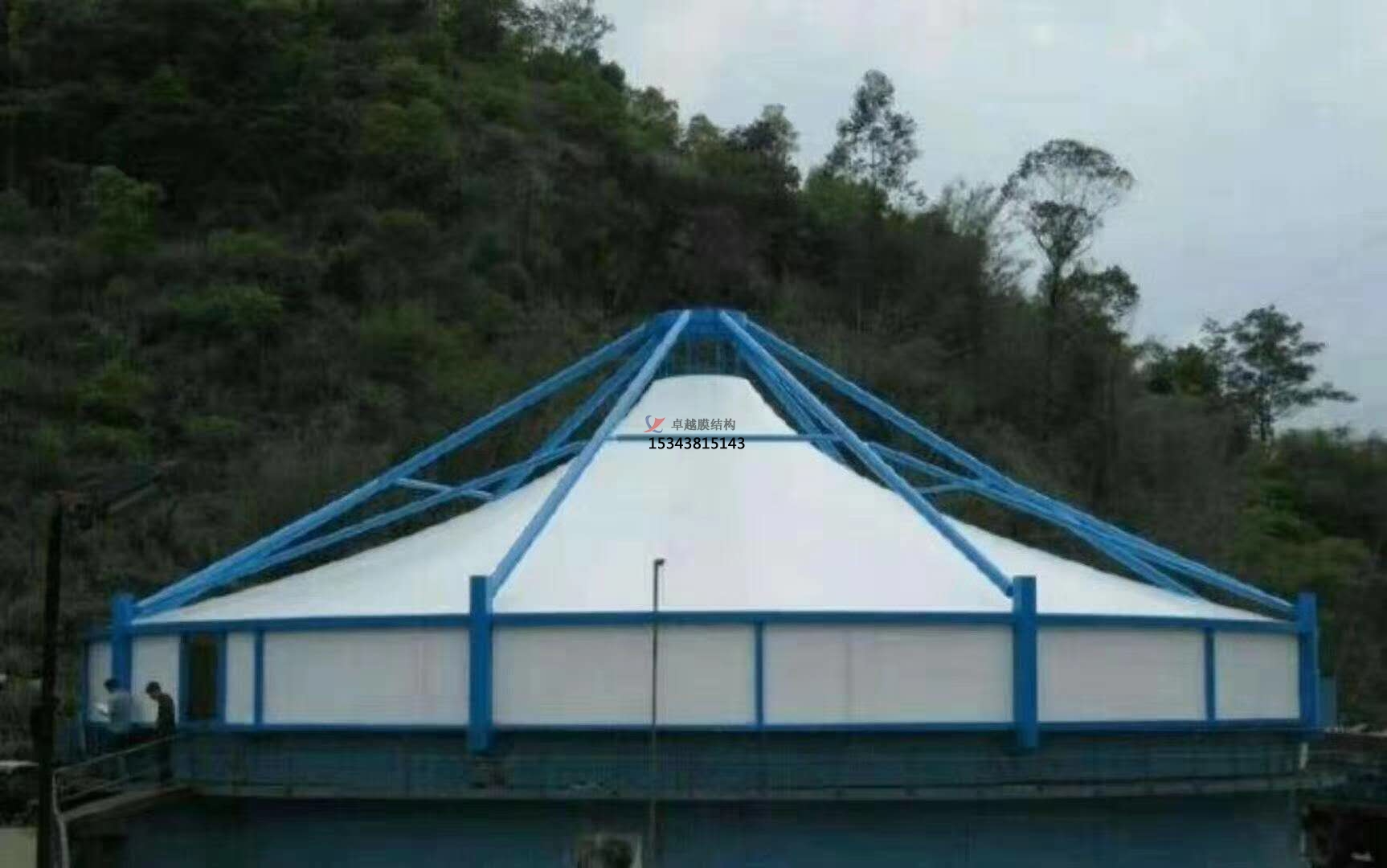 5、膜結構污水池加蓋具有結構牢固、外觀新穎,經濟適用,適用壽命長,節(jié)能環(huán)保等優(yōu)點。深受廣大用戶的一致好評,卓越所有工程全部都是通過專業(yè)3D3S膜結構軟件計算通過,結構安全,質量可靠。