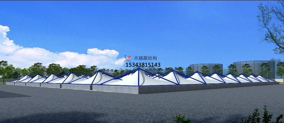 索膜結(jié)構(gòu)形式:管桁架四邊張拉索膜結(jié)構(gòu)污水池加蓋