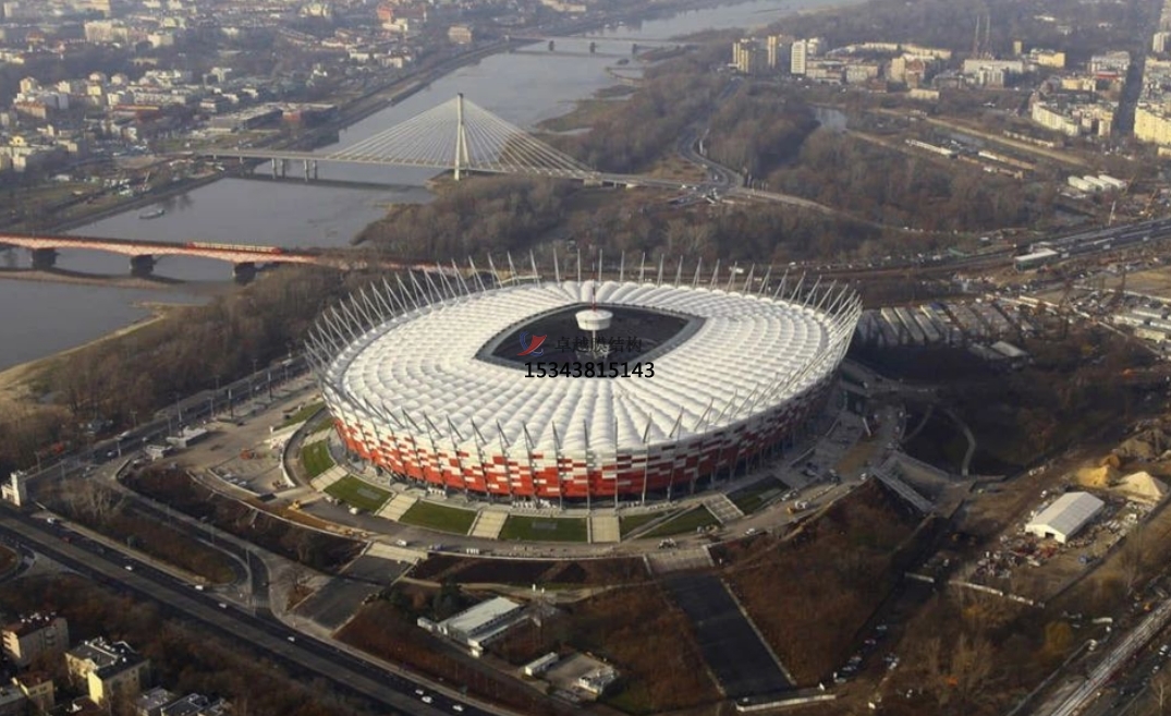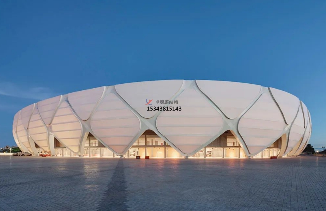 膜結(jié)構(gòu)作為一種新的建筑形式,憑其質(zhì)輕、大跨度、造型自由獨(dú)特、高透光、安裝快、經(jīng)濟(jì)性等優(yōu)點(diǎn),已廣泛應(yīng)用于全國(guó)各大賽事場(chǎng)館及體育館,憑其自身的優(yōu)越性能,逐漸成為大型體育場(chǎng)的首選!