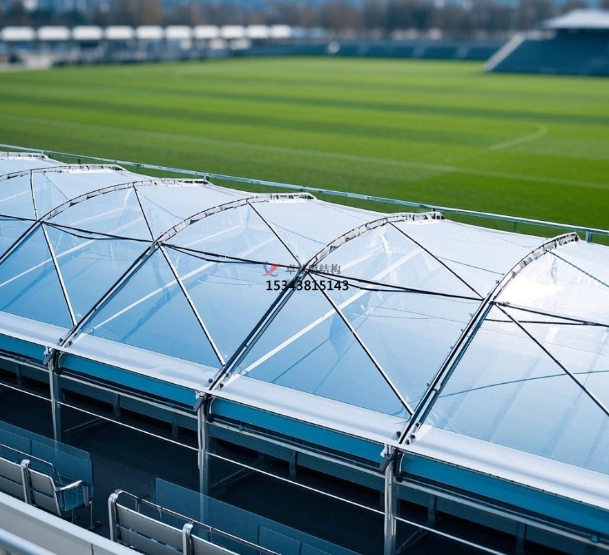 骨架式膜結(jié)構(gòu)在大型體育場(chǎng)館中廣泛應(yīng)用,其穩(wěn)定的鋼結(jié)構(gòu)骨架支撐大面積膜材,形成開闊的內(nèi)部空間。以足球場(chǎng)看臺(tái)為例,骨架式膜結(jié)構(gòu)可覆蓋整個(gè)觀眾區(qū)域,為上萬人提供舒適觀賽空間,且內(nèi)部無立柱阻擋視線,觀眾容量比傳統(tǒng)有柱看臺(tái)增加 10% - 15%。?