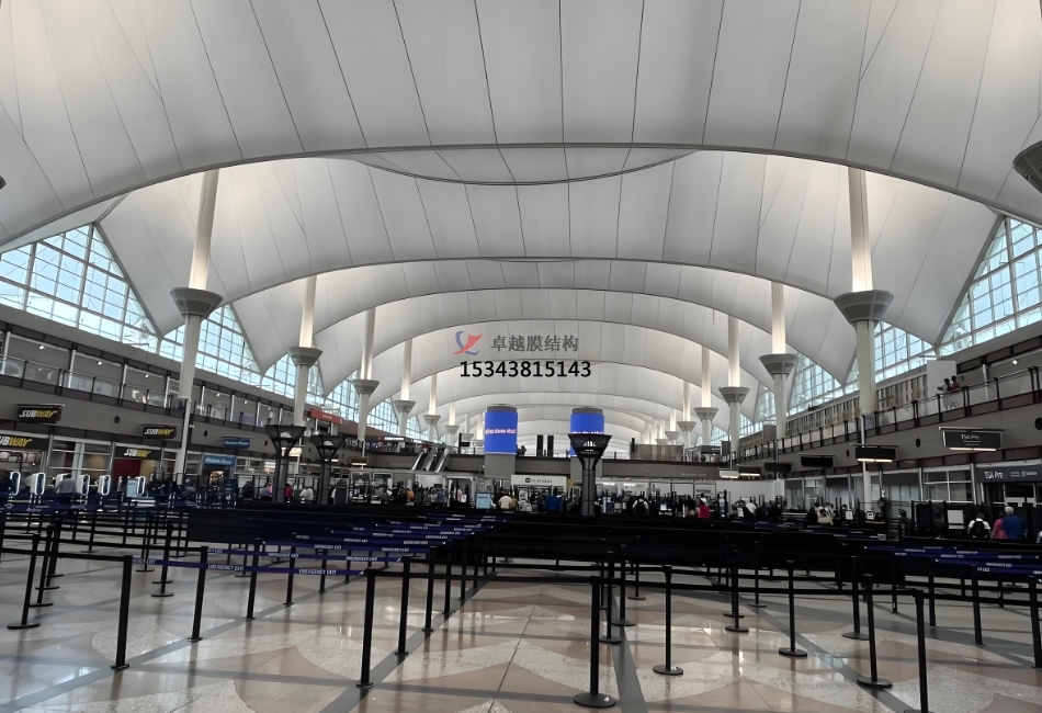 國外眾多大型機場也早已將膜結構廣泛運用于修建規(guī)劃中。比方美國丹佛新國際機場候機大廳,其采用的索膜結構系統(tǒng)令人矚目。索膜結構系統(tǒng)起源于遠古時代人類居住的帳子,在 20 世紀 70 時代以后,跟著高強、防水、透光且外表光潔、易清洗、抗老化的修建膜資料的出現(xiàn),以及工程核算科學的飛速發(fā)展,這一結構系統(tǒng)得以復興,并大量運用于大空間的公共修建,機場便是其間重要的運用領域。丹佛新國際機場候機大廳的索膜結構,造型自在、輕巧、柔美,充滿力量感,為旅客營建出共同的空間體會。其不只在外觀上極具視覺沖擊力,在功用上也體現(xiàn)杰出。膜結構能有用克服傳統(tǒng)結構在大跨度修建上的困難,創(chuàng)造出巨大的無遮擋可視空間,滿意了機場關于開闊空間的需求,使旅客在候機過程中視野愈加開闊,削減壓抑感。