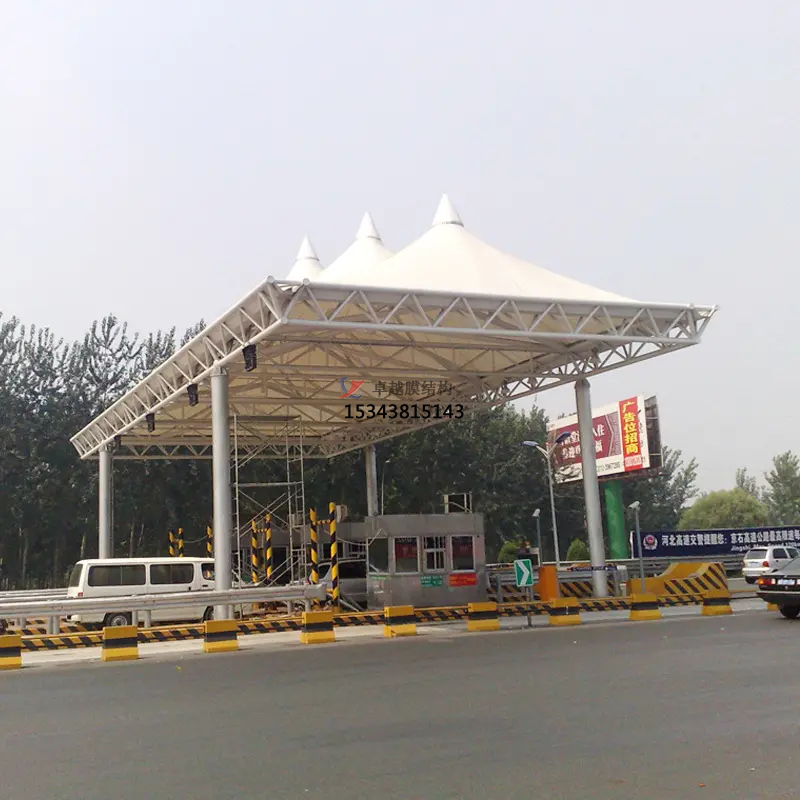在收費站張拉膜棚的施I過程中.安全是最重要的因素之一。 需要制定合理的施I方案和安全措施,并嚴格按照方案進行操作。對于高空作業(yè)等危險區(qū)域,必須采取相應的安全防護措施,以確保施I過程的安全性和可靠性。同時,需要對施工人員進行必要的培訓和教育,提高他們的安全意識和自我保護能力。