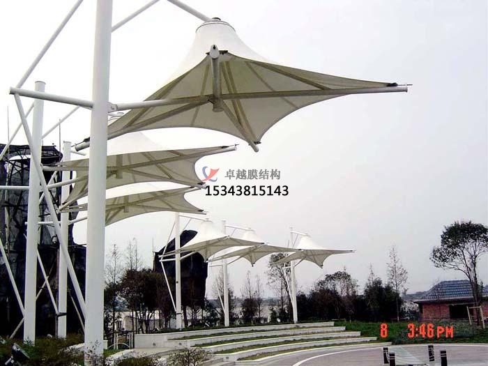 膜結(jié)構(gòu)不僅擁有美觀的造型,同時也具備形式不同的功能性,它可以是遮陽棚、雨棚、亭子、連廊、光景臺等等。