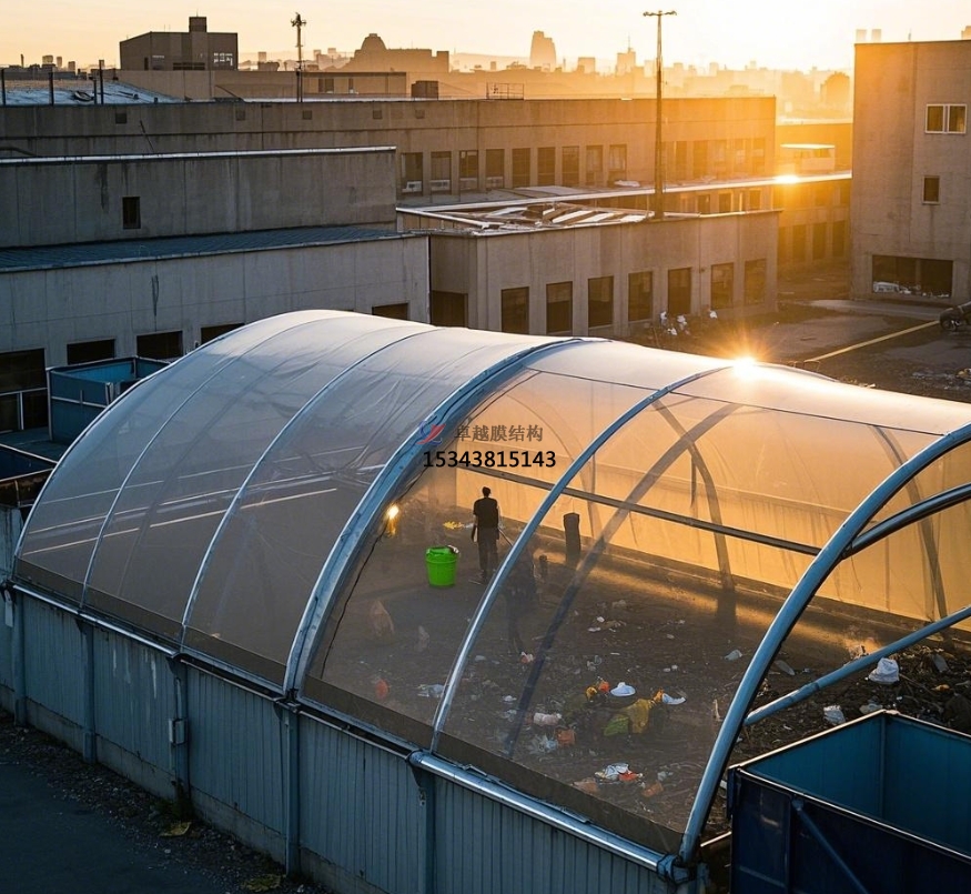 在城市的運轉體系中,垃圾中轉站作為垃圾收集與運輸的關鍵樞紐,其運行狀況直接影響著城市的環(huán)境衛(wèi)生與居民生活質量。傳統(tǒng)垃圾中轉站往往因垃圾露天堆放,導致異味彌漫、蚊蠅滋生、污水橫流等問題,對周邊環(huán)境造成較大污染。而膜結構罩棚的出現(xiàn),為垃圾中轉站帶來了全新的解決方案,正逐漸成為行業(yè)內提升環(huán)保水平、優(yōu)化運營效率的重要選擇。