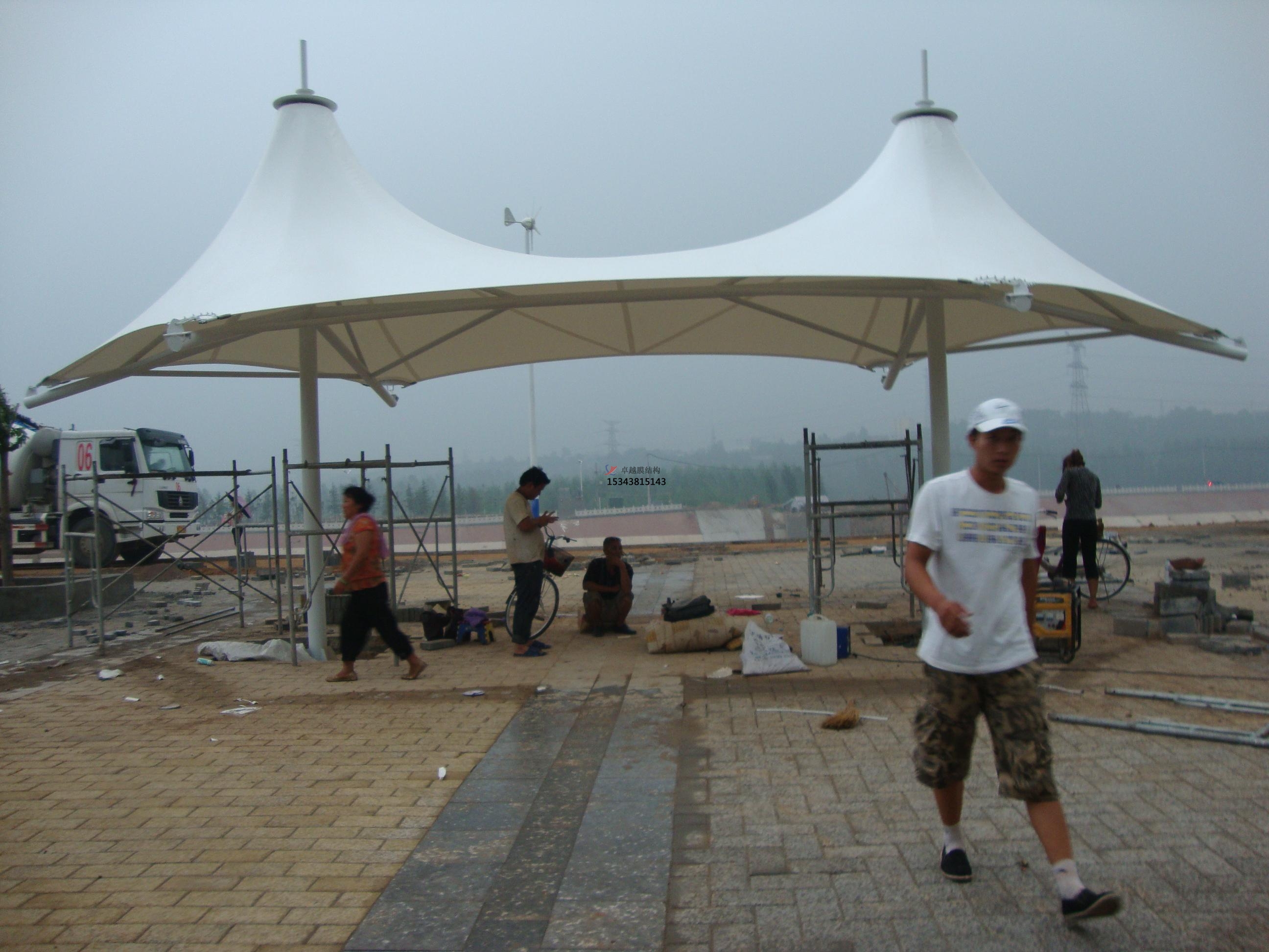 景觀園林膜結(jié)構(gòu)應(yīng)用場(chǎng)景:應(yīng)用場(chǎng)景有城市公共空間、生態(tài)與藝術(shù)重合、休閑與商業(yè)區(qū)域。城市公共空間,德國柏林花形展館采用充氣膜技術(shù),通過白色PVC膜模擬巨型花朵形態(tài),兼具遮陽、通風(fēng)及照明功能,模塊化設(shè)計(jì)可獨(dú)立或組合使用,成為會(huì)展公園的標(biāo)志性景觀,上海世博軸陽光谷以喇叭花造型膜結(jié)構(gòu)為核心,結(jié)合鋼架與水波張拉膜,形成兼具剛?cè)崽匦缘某L(zhǎng)景觀帶。生態(tài)與藝術(shù)融合,法國盧瓦爾河畔肖蒙國際花園節(jié)的紅色花形景觀膜,通過彩膜與陶罐系統(tǒng)結(jié)合,既節(jié)水又象征生態(tài)循環(huán),具有教育與警示意義。荷蘭Leidsche Rijn公交站采用牽?;ㄔ煨湍そY(jié)構(gòu),排列整齊的形態(tài)與法拉利TX30膜材結(jié)合,成為兼具功能性與地標(biāo)性的城市設(shè)施。休閑與商業(yè)區(qū)域,景觀棚膜結(jié)構(gòu)廣泛應(yīng)用于步行街、公園綠地和景區(qū),提供遮陽避雨空間的同時(shí),通過夜間燈光營造夢(mèng)幻效果,增強(qiáng)商業(yè)吸引力。