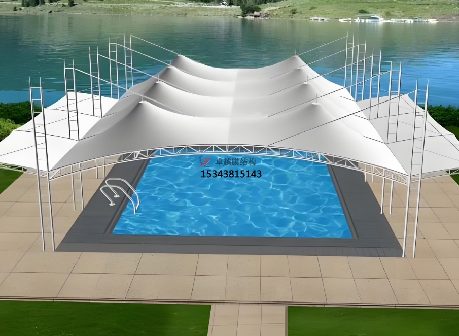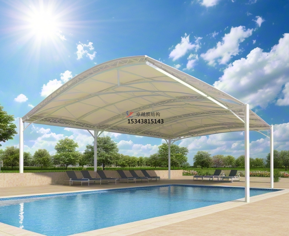 膜結(jié)構(gòu)遮陽(yáng)棚所采用的膜材料,具有自重輕、透光性好、隔熱性能強(qiáng)、耐腐蝕、防水、耐菌、耐高溫、抗紫外線、老化慢等優(yōu)點(diǎn)。這種材料不僅能夠提供有效的遮陽(yáng)效果,還能有效隔絕紫外線,保護(hù)游泳者的皮膚。同時(shí),膜材料具有良好的自潔能力,不易沾染灰塵,依靠雨水沖洗就能保持潔凈,大大降低了后期維護(hù)成本。