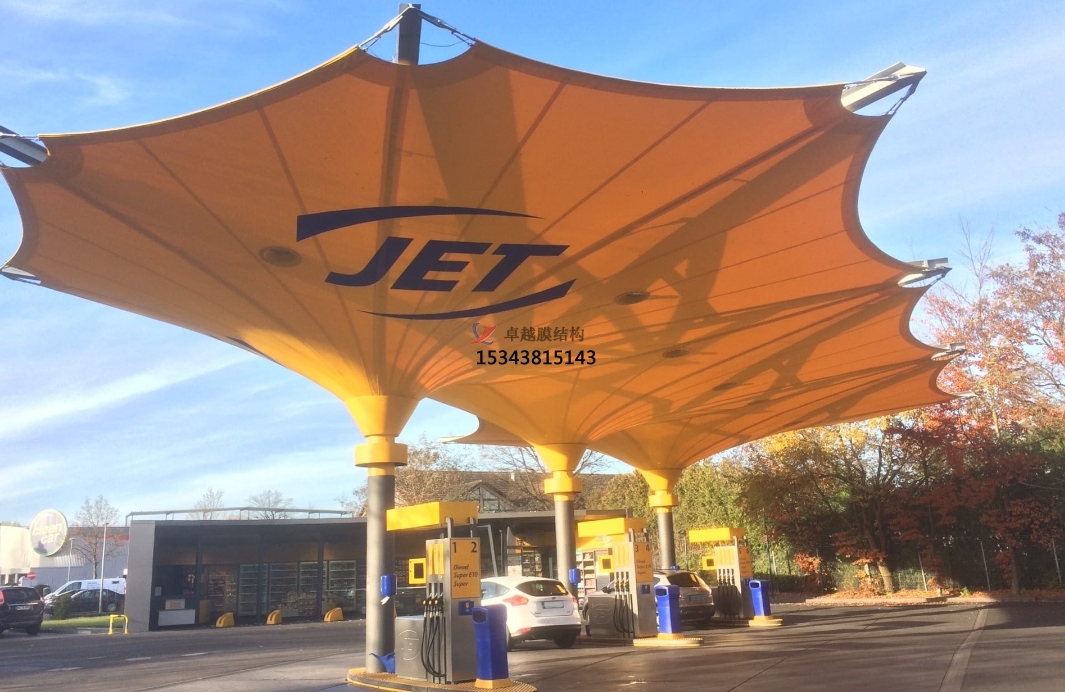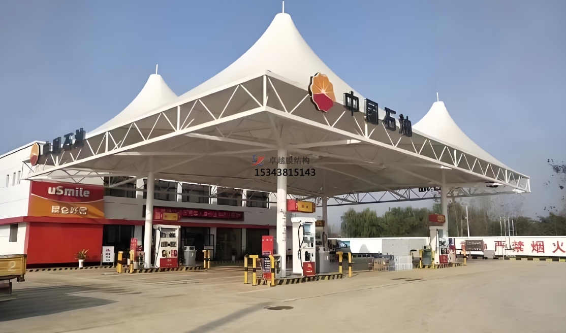 膜結(jié)構(gòu)頂棚通過技術(shù)迭代與設(shè)計創(chuàng)新,正在重新定義加油站的建筑形態(tài)。其“輕盈、高效、可持續(xù)”的特性,不僅滿足了能源補給場景的功能需求,更成為城市美學(xué)與低碳理念融合的典范。