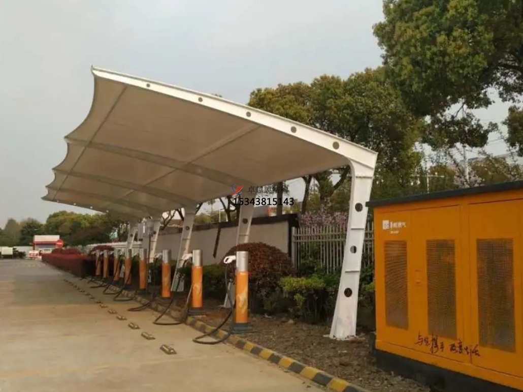 加氣站膜結(jié)構(gòu)雨棚是一種現(xiàn)代化的建筑形式,具有輕質(zhì)高強(qiáng)、美觀大方、施工快捷、維護(hù)方便和節(jié)能環(huán)保等特點(diǎn)。其在加氣站中的應(yīng)用,不僅可以提供寬敞、明亮的加油環(huán)境,還能有效地抵御各種惡劣天氣,提高顧客的舒適度和安全性。