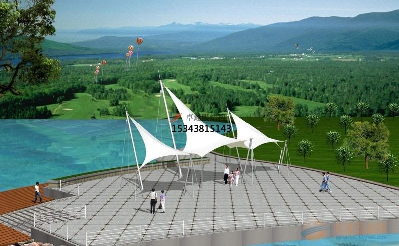 張拉膜景觀是一種建筑與結(jié)構(gòu)完美結(jié)合的結(jié)構(gòu)體系;它是用高強(qiáng)度柔性薄膜材料與支撐體系相結(jié)合形成具有一定剛度的穩(wěn)定曲面,能承受一定外荷載的空間結(jié)構(gòu)形式;這種結(jié)構(gòu)形式特別適用于大型體育場館、人口廊道、小品、公眾休閑娛樂廣場、展覽會(huì)場、購物中心等領(lǐng)域。
