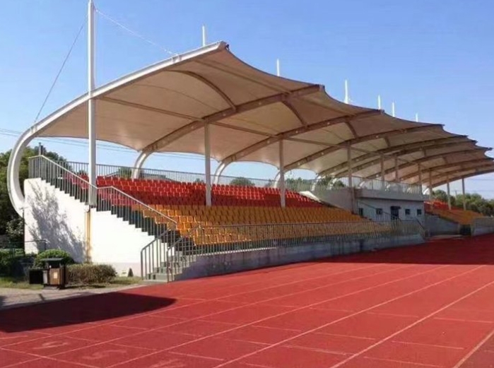 張拉膜遮陽棚主要采用鋼結(jié)構(gòu)做骨架支撐結(jié)構(gòu),高自潔建筑膜材做屋面材料防水材料,設(shè)計美觀大方,結(jié)構(gòu)安全穩(wěn)定,使用壽命可達15年到30年。廣泛應(yīng)用在于各類大中專院校,體育場配套
