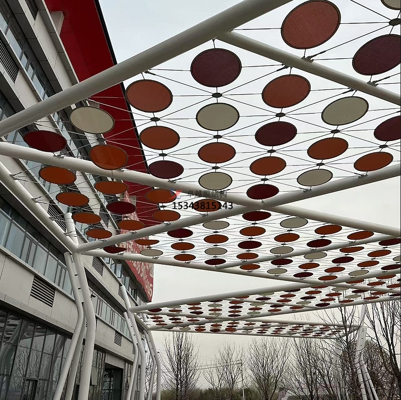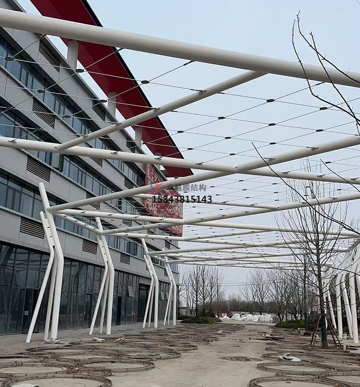 索膜結(jié)構(gòu),顧名思義,是由索與膜作為主要受力構(gòu)件共同組成的空間結(jié)構(gòu)體系。從材料層面來看,膜材通常采用高強度、耐久性好的柔性材料,如聚四氟乙烯(PTFE)涂層玻纖材料、聚氯乙烯(PVC)涂層織物等。這些膜材不僅具備良好的抗拉強度,能夠承受一定的荷載,還具有獨特的建筑性能,如透光性、自潔性等。索則多采用高強度鋼索,憑借其出色的抗拉能力,為膜材提供穩(wěn)定的支撐和張拉作用。